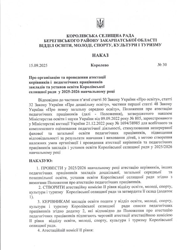 Міністерство освіти і науки України оновило Положення про атестацію педагогічних працівників (наказ МОН від 09.09.2022 № 805, у редакції наказу від 10.09.2024 № 1277).